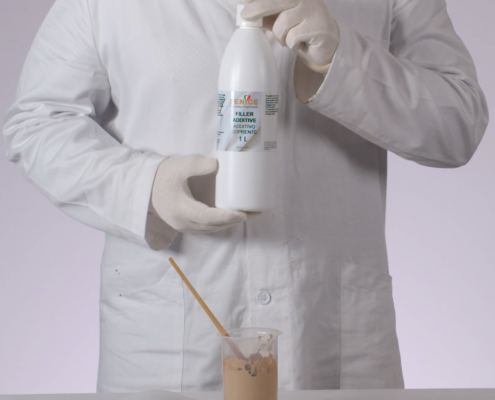 Se il sedile presenta graffi e abrasioni è necessario utilizzare lo stucco Mender Fast. Versare in un contenitore la quantità di stucco necessaria e aggiungere alcune gocce di Base Colorata Concentrata, campionata a tono. In questo modo sarà necessario meno colore per coprire la riparazione. Miscelare bene lo stucco e la Base Colorata Concentrata.