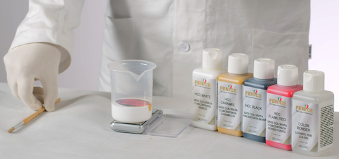 A questo punto, pesare le Basi Colorate Concentrate necessarie per il ripristino seguendo la ricetta sullo schermo. Miscelare il colore a campione con il Legante per colori in percentuale del 5%. In questo modo è possibile aumentare l’adesione del colore.
