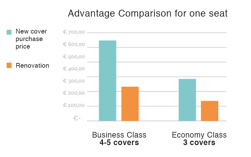 - Refurbishing leather saves up to 70% compared to replacing it. The technology originally applied to the leather in the tannery is used to guarantee the same performance and durability as the original seat.